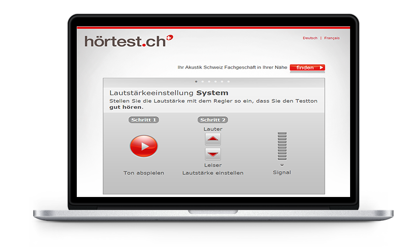 Der mehrstufige Hörtest prüft anhand verschiedener Frequenzhöhen das individuelle Hörvermögen. Passend zu diesen Frequenzen wählt die testende Person jeweils die individuelle Lautstärke aus. Auf Basis der Ergebnisse erhält der Nutzer ein Feedback mit adäquater Empfehlung zum weiteren Vorgehen. Die Online Hörprüfung ist mit Rücksicht speziell auf ältere User intuitiv aufgebaut.