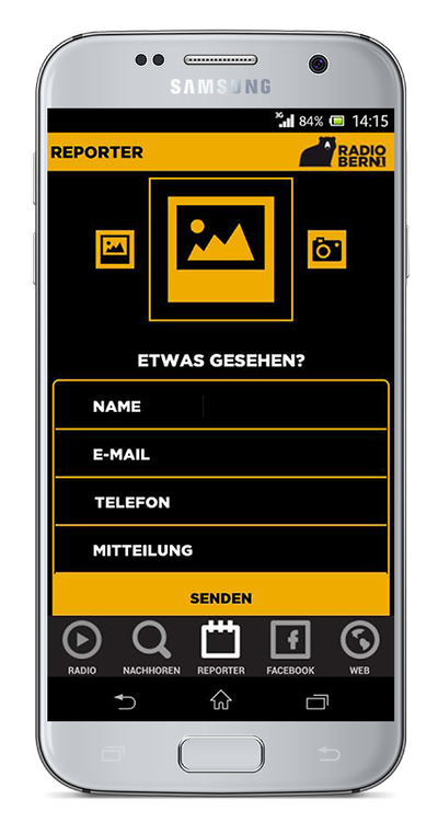Weiter ist die Applikation mit Facebook und der Website von Radio Bern1 verknüpft.